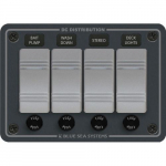 The Blue Sea Systems contura switch water resistant panels can withstand such water exposures as salt spray, rain and more. Each panel has switches with LEDs to indicate that the device is ON and non-backlit labels for circuit identification. The items have a contemporary design.