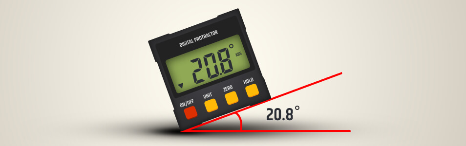 1. Set your protractor to the “horizontal measurement mode” (there may be the ABS symbol on the display).