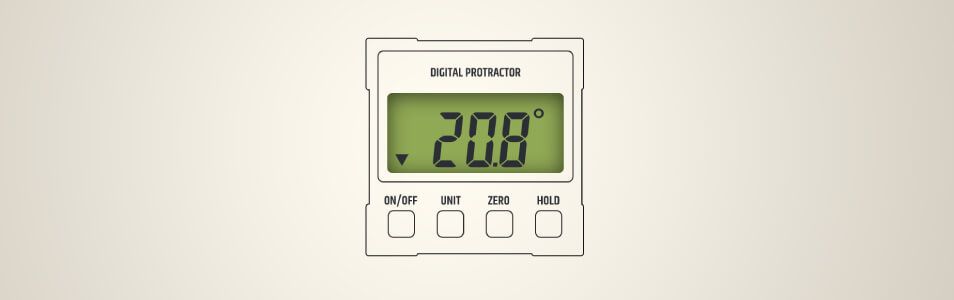 You can see an example of an electronic protractor that is similar to a bevel protractor in design. It automatically reads the angle and as with most digital devices, the result is shown on the display.