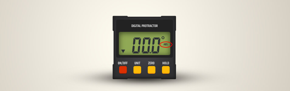 1. Set your protractor to the “horizontal measurement mode” (there may be the ABS symbol on the display).