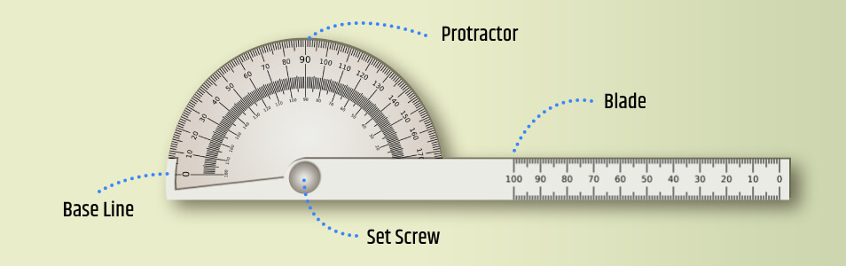 Let’s take a look at the elements of a protractor.