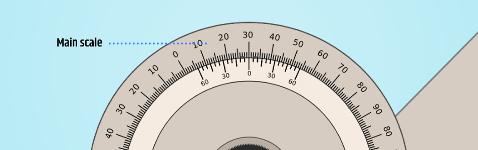 To measure an obtuse angle between the beam and the blade, the number of degrees you see on the scale when measuring the angle should be subtracted from 180 degrees as the dial is graduated from opposite zero marks to 90 degrees each way.