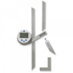 An electronic protractor (or a digital protractor) measures the angle automatically, there are no scales so the device is easier to use than a regular, non-digital protractor.