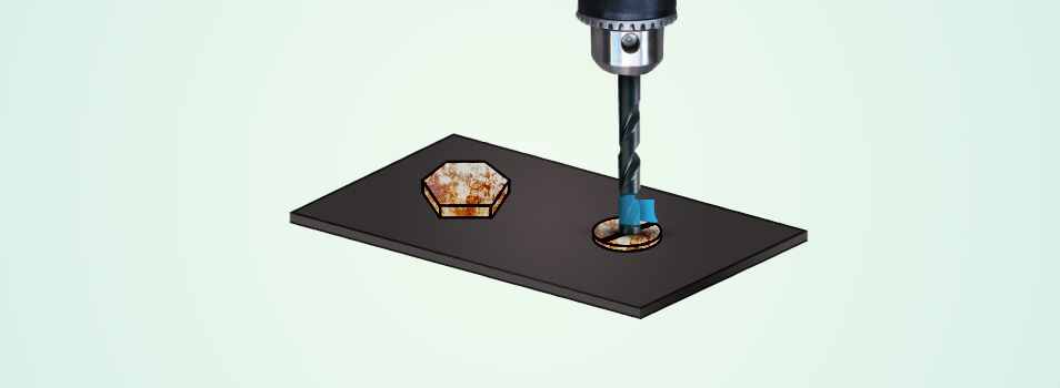 Applying the screw extractor, start by drilling the hole into the head of the damaged screw. Use the thread cutting oil to the drill bit before drilling. It will be easier to drill through the metal by reducing the friction.