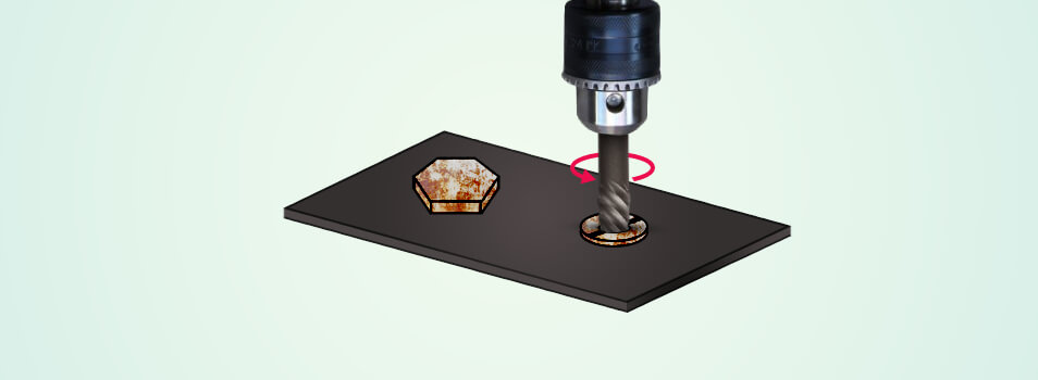 Applying the screw extractor, start by drilling the hole into the head of the damaged screw. Use the thread cutting oil to the drill bit before drilling. It will be easier to drill through the metal by reducing the friction.