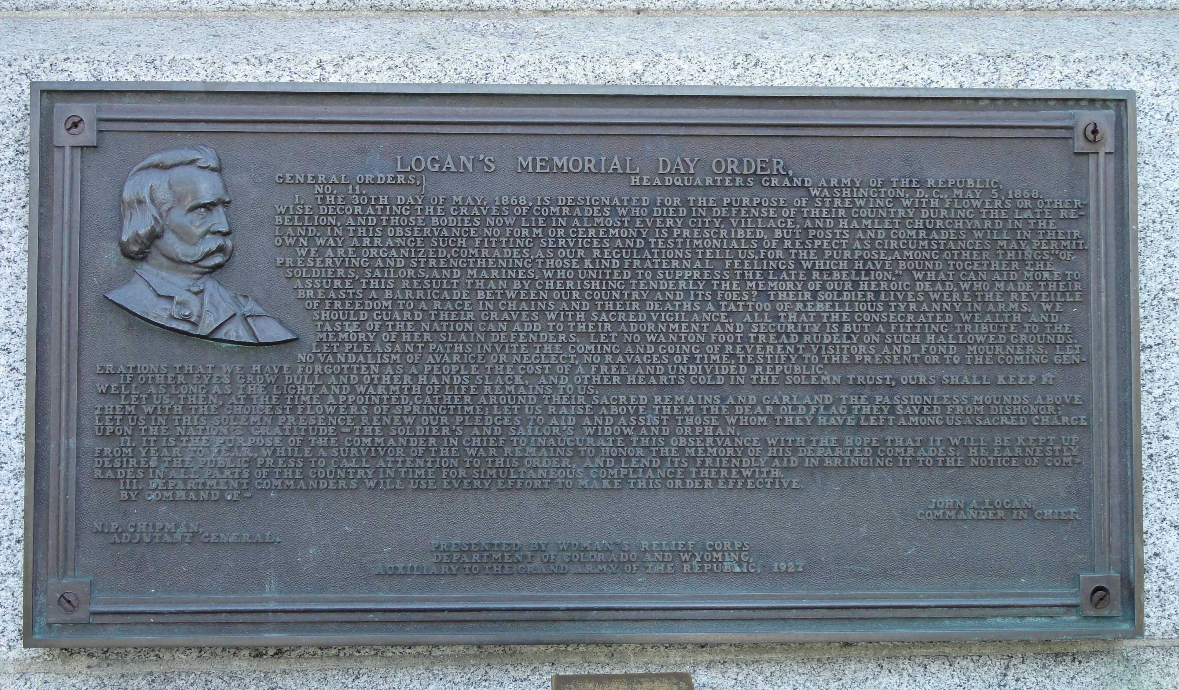 Memorial Day, originally called Decoration Day, is a post-Civil War holiday. It was first instituted by the Grand Army of the Republic, on May 5th, 1868 General Logan issued general Order No. 11 calling for the membership to set aside May 30th as a day for remembering the sacrifices made by their fallen brothers. Quoting General’s words "the 30th of May 1868 is designated for the purpose of strewing flowers, or otherwise decorating the graves of comrades who died in defense of their country, and whose bodies now lie in almost every city, village, and hamlet church yard in the land."