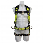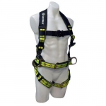 A harness is a system of straps and buckles used to prevent damages caused by a fall. Being a part of a personal fall arrest system, it limits the maximum arresting force on a worker. Harnesses distribute these forces to the parts of the body best suited to absorb forces and support the weight (e.g., the large muscles of the upper things, chest, and shoulders) and divert the forces from more vulnerable parts of the body, such as the groin, stomach, and neck). |