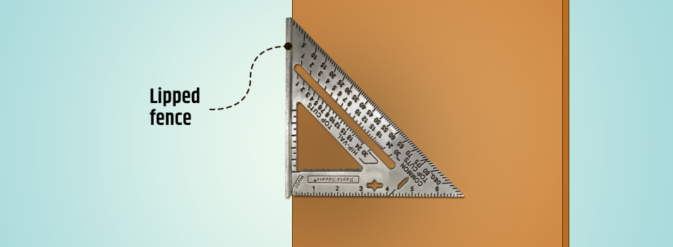 Determine the lipped fence of the square tool and locate it flush with the edge of the working material. Keep the lipped fence pressed tightly against the material for proper results.