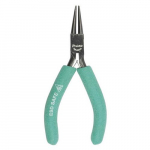 The round jaws on these pliers are thin and form a triangular design of the jaws. They are applied for creating loops in jewelry, and insulated handles of the tools allow users to apply them in electrical tasks.