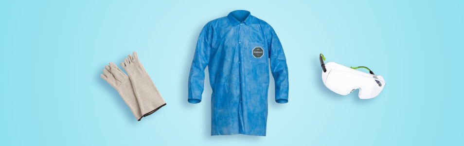 As autoclaves use steam to kill harmful bacteria, you must protect yourself. To prevent burns and scalds, wear:
