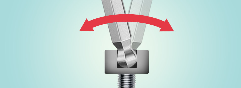With a ball end hex key, the fastener access angle can be varied, there is no need to approach the fastener directly at a 90° angle, which is very convenient.