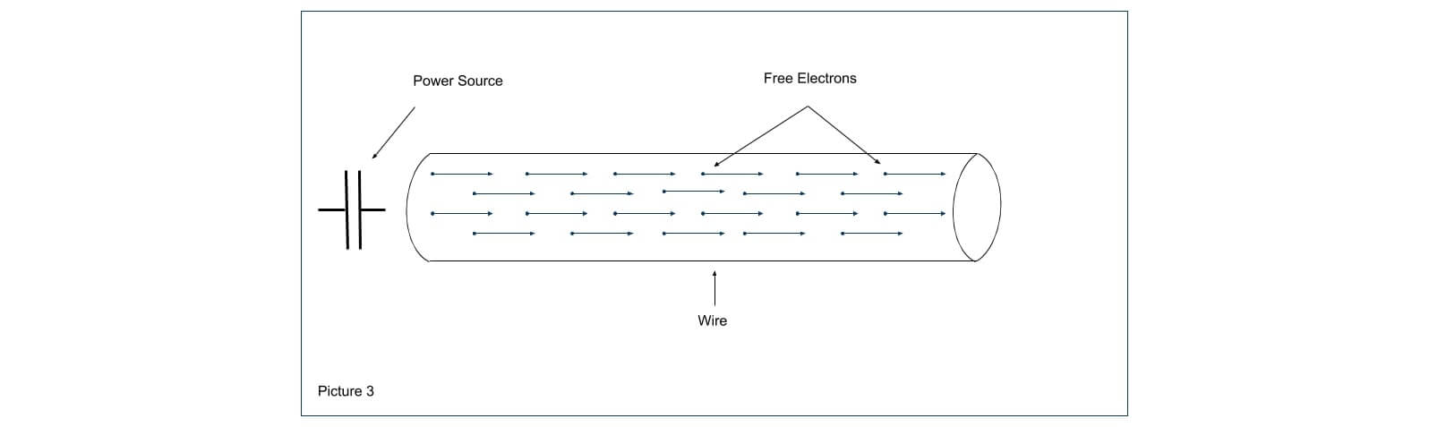 The atoms in a conducting material have free electrons that randomly move from one atom to another (Picture 2).