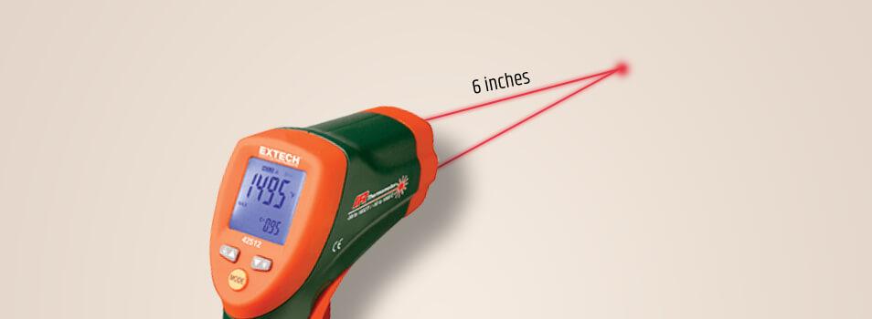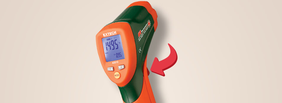 Point the IR thermometer at the object you need to measure. Hold the device 6 inches away from the object. Hold the IR thermometer’s trigger until it starts measuring the temperature.